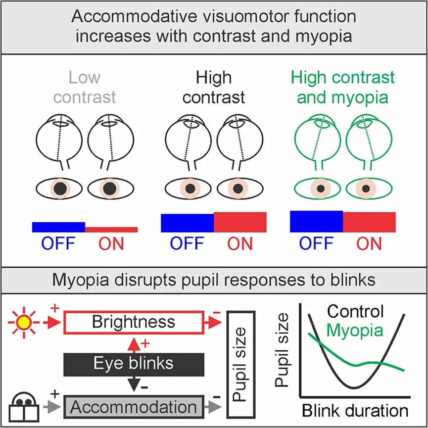 此外,研究人員還觀察到,近視的人在眼部調(diào)節(jié)時(shí),眼球的轉(zhuǎn)動(dòng)會(huì)出現(xiàn)異常,同時(shí)眨眼對瞳孔收縮的觸發(fā)作用也會(huì)減弱。