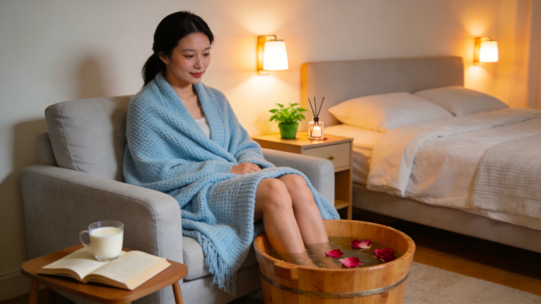睡前1-2小時(shí)用40℃左右的水泡腳或泡澡,讓體溫先升高再自然下降。體溫下降的過(guò)程會(huì)讓人產(chǎn)生睡意。