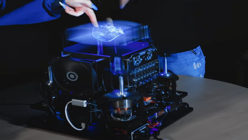 FlexiVol 利用視覺(jué)暫留構(gòu)建三維影像的方法,其實(shí)并不是它的“專利”。在此之前,人們就能依靠擴(kuò)散器創(chuàng)造出同樣的三維影像。只不過(guò),傳統(tǒng)擴(kuò)散器是通過(guò)高速振蕩投射圖像,用戶在接觸圖像時(shí)存在損壞設(shè)備或劃傷手的風(fēng)險(xiǎn),無(wú)法滿足用戶將手伸到圖像內(nèi)部的愿望。而FlexiVol 創(chuàng)新地將原本硬邦邦的剛性結(jié)構(gòu)換成了特制的彈性擴(kuò)散條,這種柔性結(jié)構(gòu)允許用戶像穿過(guò)門(mén)簾一樣將手伸入三維影像中。更值得一提的是,F(xiàn)lexiVol創(chuàng)造出的三維影像還可以實(shí)時(shí)進(jìn)行畫(huà)面校正。當(dāng)用戶將手伸入其中后,三維影像并不會(huì)因?yàn)椴牧系淖冃味l(fā)生改變,可為用戶帶來(lái)更好的視覺(jué)體驗(yàn)。