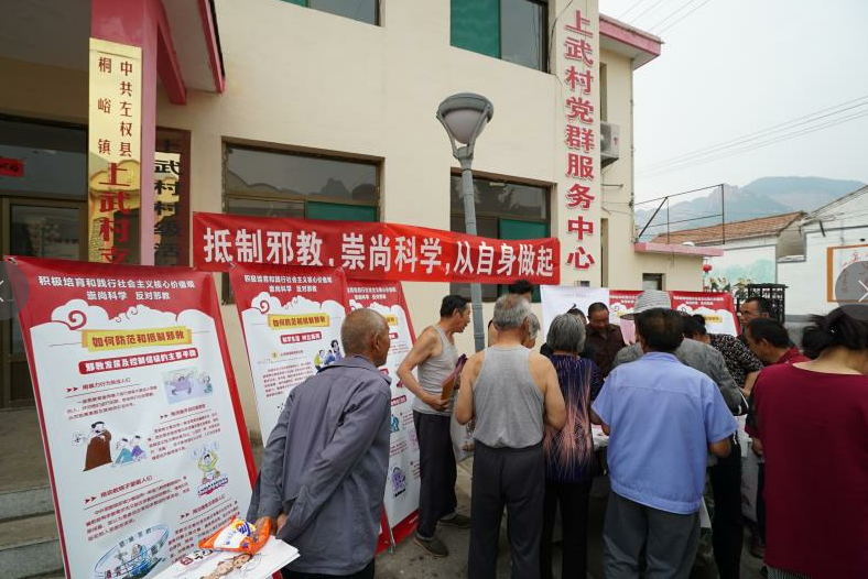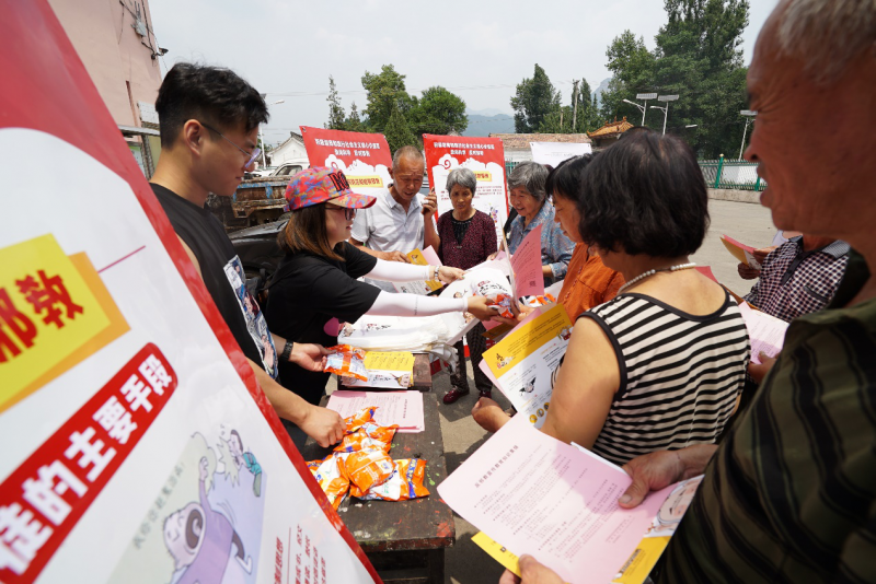 活動期間,工作人員主要通過懸掛橫幅,擺放展架,分發(fā)反邪教宣傳資料,贈送環(huán)保袋、洗衣粉、香皂盒小禮品等形式進(jìn)行了宣傳。在現(xiàn)場,工作人員擺放了有關(guān)“什么是邪教” “如何防范和抵制邪教”以及“邪教的主要手段”等內(nèi)容介紹的展板,并向村民們講解邪教的種類、本質(zhì)、特征和危害,邪教與宗教的區(qū)別,處理邪教的法律法規(guī)等等。據(jù)統(tǒng)計,在活動現(xiàn)場共分發(fā)宣傳頁、西游反邪宣傳折頁、以及小禮品約1500份。同時,我們還在“晉風(fēng)網(wǎng)”網(wǎng)站制作活動專題頁面;在“晉風(fēng)網(wǎng)”“西游幺幺零”等微信公眾號上開設(shè)“反邪活動”專欄,以及在“西游幺幺零”頭條號上,針對反邪宣傳月活動進(jìn)行重點(diǎn)宣傳,著力提升活動的傳播力。