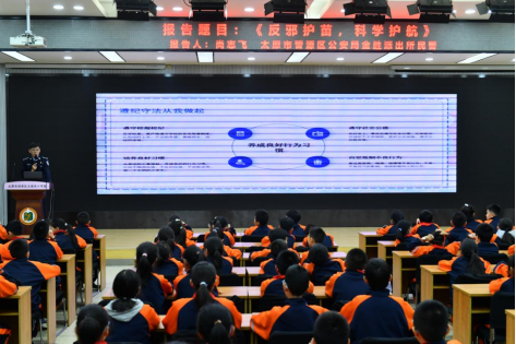 太原市晉源區(qū)公安局金勝派出所民警以《反邪護苗,科學護航》為題,開展了一堂生動的法治教育課。他圍繞“法律是什么”“生活與法律”“不良行為的定義與后果”等內(nèi)容,結合真實案例剖析青少年常見不良行為及其法律風險,引導同學們樹立行為邊界意識,自覺抵制誘惑,做遵紀守法的好少年。尚志飛還特別強調(diào)了邪教的非法組織本質(zhì),提醒同學們遇到可疑情況及時向家長、老師或警方求助。